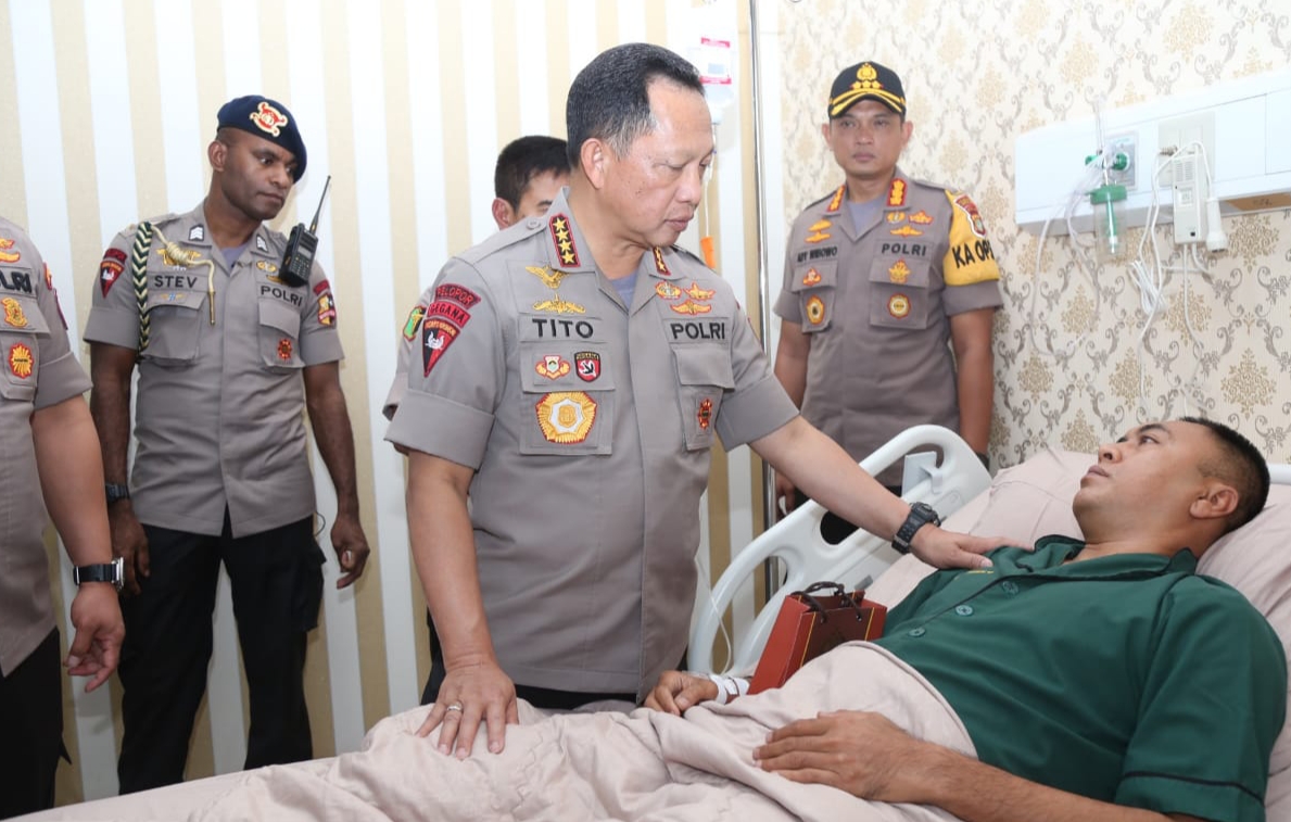 Setibanya di Rumah Saki, Kapolri langsung menyalami dan memberikan semangat kepada Anggota Polri yang sedang di rawat diantaranya Bripda M Yusuf dari kesatuan Brimob Polda Metro Jaya, Brigadir Mulyadi dari kesatuan Brimob Aceh, Bharada Rizky Ainul dari kesatuan Brimob Kedung Halang, Bripka Oktavina (Polwan) dari kesatuan Brimob Papua dan Bripda Serlina (Polwan) dari kesatuan Brimob Polda Kalteng.