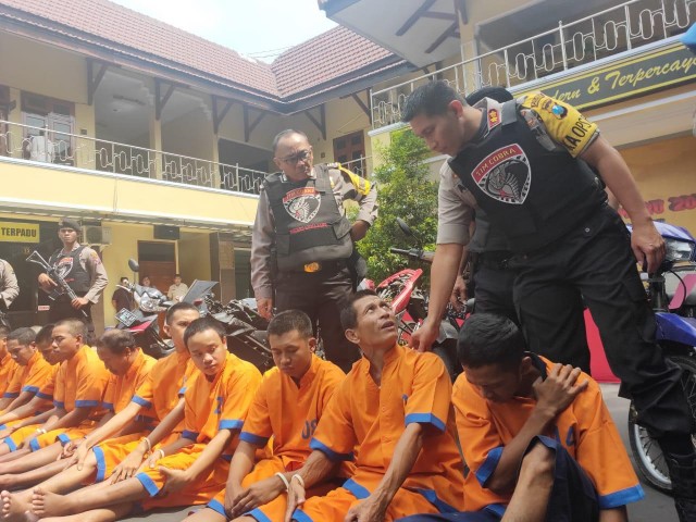 Ke dua belas tersangka yang dijejer di halaman Mapolres Lumajang agar masyarakat tau bahwa inilah para pelaku kejahatan jalanan yang meresahkan masyarakat dan sering membuat onar di wilayah Lumajang.