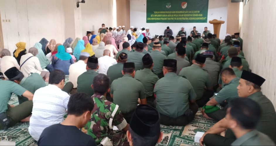 Diawali dengan pembacaan ayat suci Al Quran oleh Ustad Haji Lukman Hakim S.Ag dan dilanjutkan sambutan oleh Dandim 0505/JT kemudian tauziah ceramah agama dengan mengundang penceramah Bapak Ustad Haji Amrullah S.Ag.