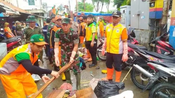Danramil 06 Kalideres Bersama Tiga Pilar Kerja Bakti Bersihkan Sampah Pasca Banjir Di Semanan Kalideres