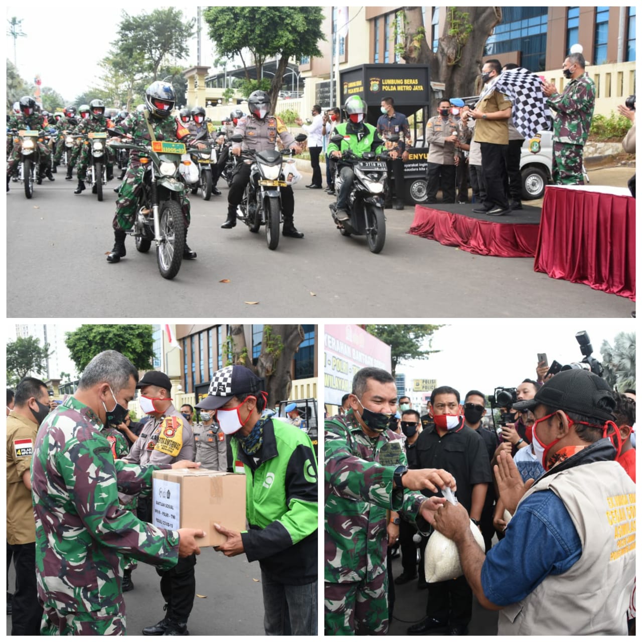 Sebelum pelepasan penyaluran bantuan sosial, Pangdam Jaya, Ketua MPR dan Kapolda Metro Jaya memberikan bansos secara simbolis kepada masing masing perwakilan masyarakat kemudian dilanjutkan dengan mengibarkan bendera star pertanda dimulainya pendistribusian bantuan oleh TNI, Polri dan Ojek Online kepada masyarakat di wilayah Jakarta Pusat.