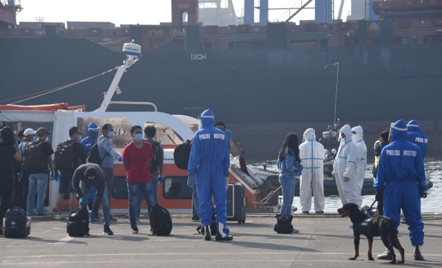 Danlantamal III mengatakan, ABK sebanyak 241 WNI terdiri dari 229 Pria dan 12 Wanita, tiba didermaga disambut oleh Tim satgas.”Saat turun dari tunderboat langsung dilakukan penyemprotan disinfektan baik terhadap tubuh maupun barang bawaannya, terkhusus untuk barang bawaan diwajibkan melewati X-Ray dari Tim Bea Cukai dan juga pemeriksaan oleh K-9/Anjing Pelacak Pom Lantamal III Jakarta,” katanya.