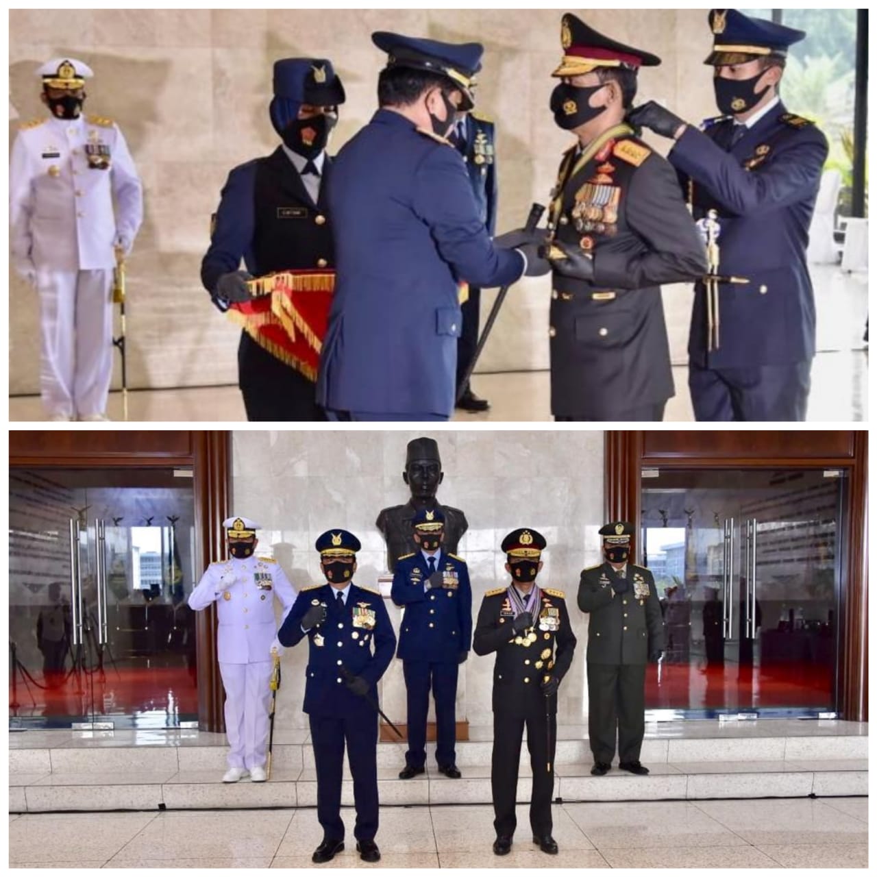 JAKARTA- JOURNAL REPORTASE,- Panglima TNI Marsekal Hadi Tjanjanto menganugerahi Kapolri Jenderal Idham Azis tiga bintang utama yaitu Kartika Eka Paksi Utama, Jalasena Utama dan Swa Bhuana Utama. Upacara penganugerahan digelar di Ruang Hening, Mabes TNI, Cilangkap, Jakarta Timur, Selasa (28/7).