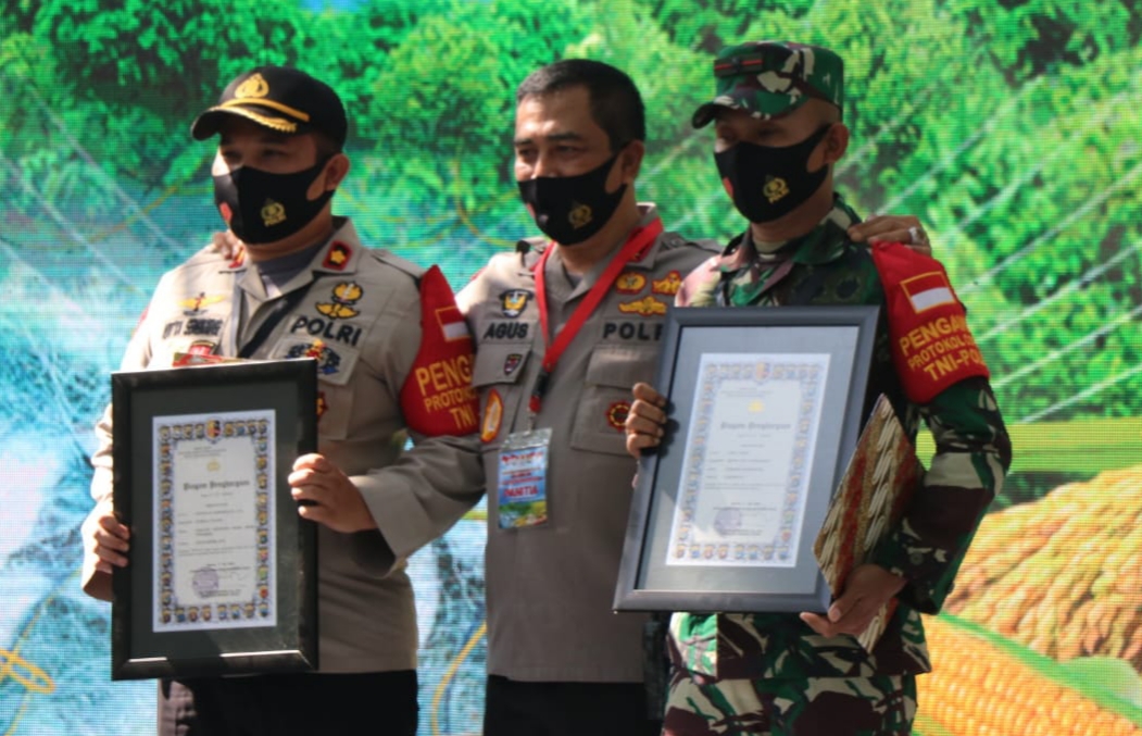 Ganjaran penghargaan yang di sematkan kepada Mayor Inf Deni Suryo dan Kompol Aditya SP Sembiring karena dianggap mampu menciptakan ketahanan pangan di tengah pandemi Covid-19.