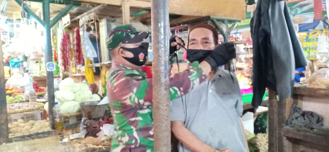 “Gunakan masker dengan benar apabila keluar rumah, setiap selesai beraktivitas, mencuci tangan dengan sabun dan bilas dengan air yang mengalir,”imbau Danramil