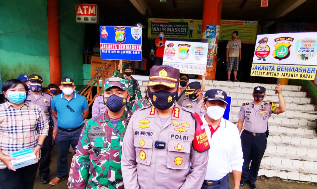 Kapolres Metro Jakarta Barat Kombes Pol Ady Wibowo mengatakan, salah satu strategi yang dilakukan pihaknya dalam mendisiplinkan protokol kesehatan pencegahan Covid-19 di masyarakat adalah lewat kampanye dan membagikan masker.