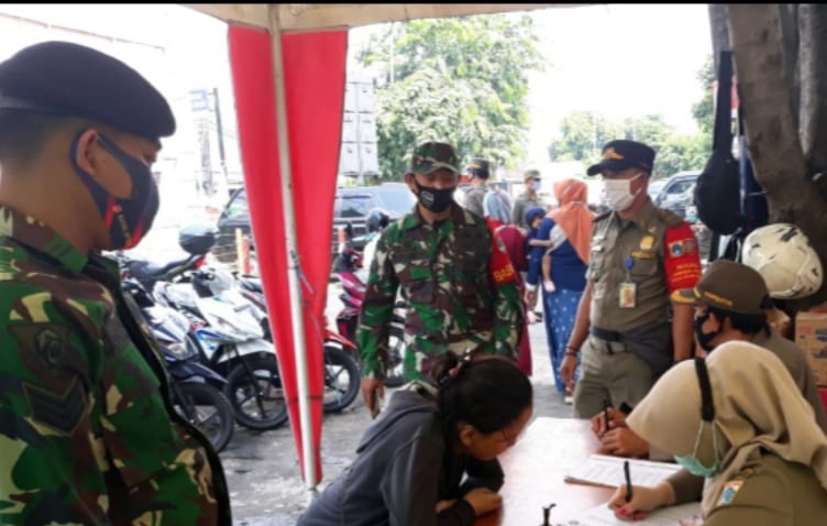 JAKARTA– JOURNALREPORTASE- Pelda Irwan Gunawan, sertu Sumarno Babinsa Koramil 03/Psr Rebo Kodim 0505/JT dan Pasukan BKO Yonkav-7/PS bersama tiga pilar pantau Penegakan Disiplin Mematuhi Protokol Kesehatan Tibmas, di Terminal Kampung Rambutan, Ciracas Jakarta Timur, Senin (30/11/20).