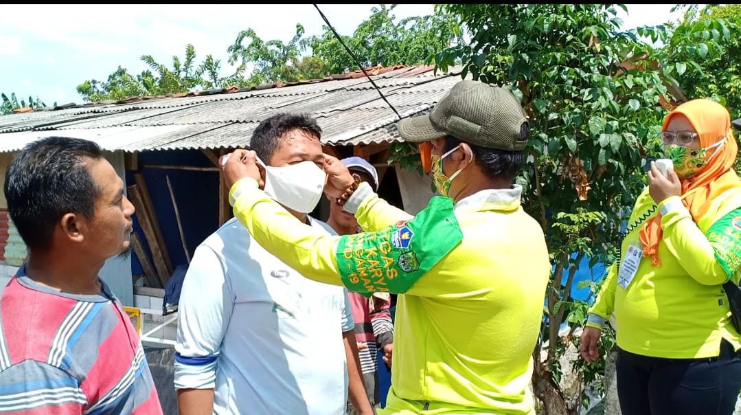 Kemudain lanjutnya, Satgas Padat Karya melakukan patroli di Jln.Karya bhakti di semua RT. Dari RT 02 sampai RT 05. RT 01, 02, 03, 04 dan 05, memberikan himbauan dengan alat pengeras suara agar warga tetap menggunakan masker dengan benar.