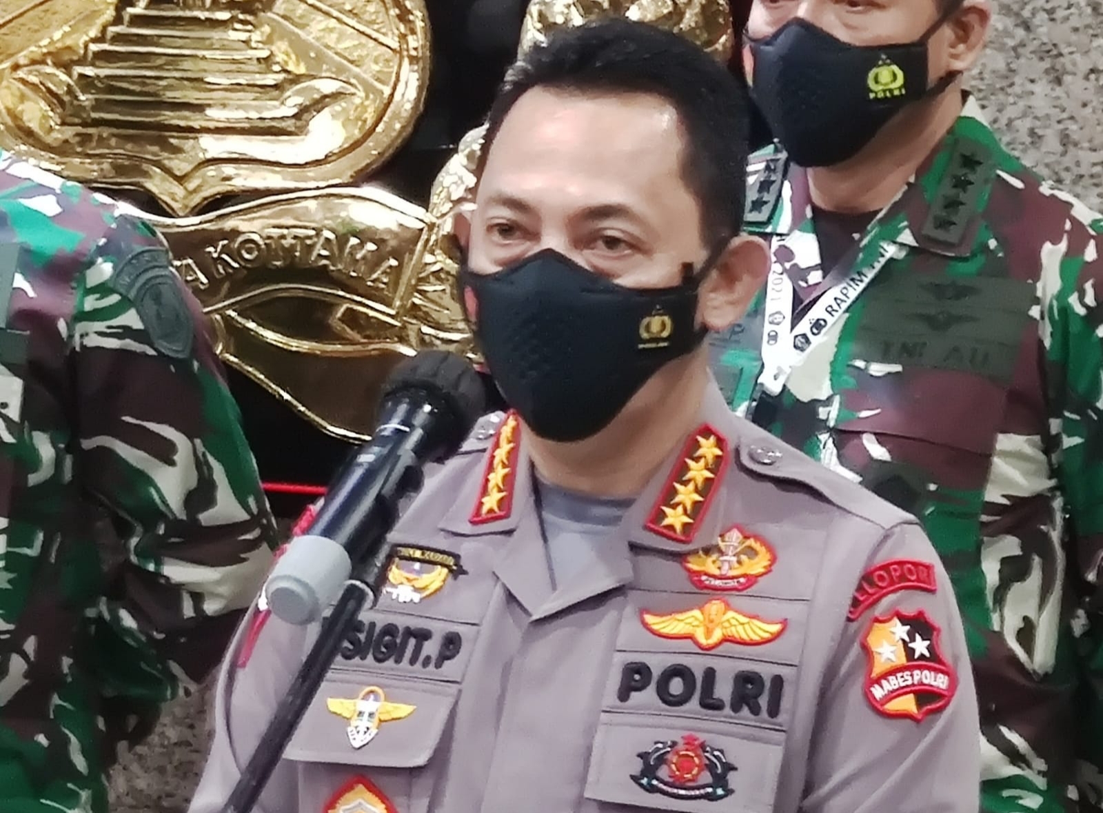 Panglima TNI Marsekal Hadi Tjahjanto usai Rapim TNI-Polri di Rupatama Mabes Polri, Jalan Trunojoyo, Jakarta Selatan, Senin (15/2/2021), mengatakan Rapim TNI-Polri 2021 dengan mengambil tema ‘Dilandasi Profesionalisme, Soliditas, dan Sinergitas TNI Polri Siap Mendukung Penanggulangan Paripurna COVID-19 dan Pemulihan Ekonomi Nasional Dalam Menjaga Persatuan dan Kesatuan Bangsa Menuju Indonesia Maju’ bertujuan untuk mesolidkan barisan untuk mengawal kebijakan pemerintah mulai dari mengawal vaksinasi hingga membantu pemulihan ekonomi.