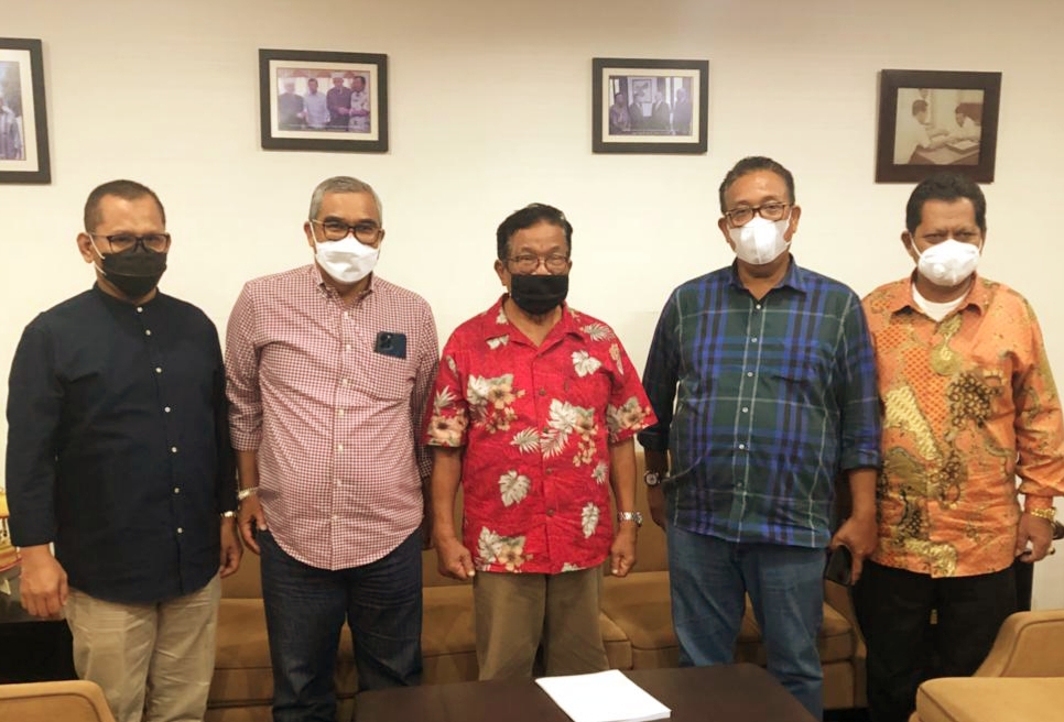 Pengusaha Aksa Machmud Bos Bosowa menerima pengurus BPW KKSS Kaltim , Jumat, 12 di Menara Bosowa Makassar. Dari kiri : Alimuddin Latief, Prof DR. Masjaya, Aksa Mahmud, Ir. H.Yusri MP dan DR.H.Ridwan Tasa