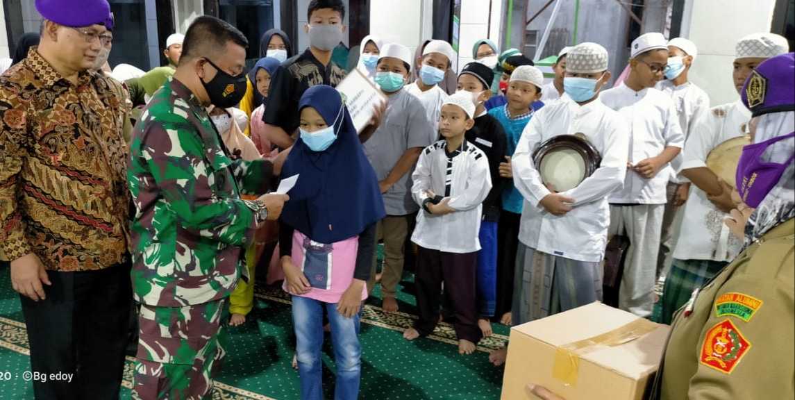 JAKARTA-JOURNALREPORTASE-Danramil 08/Duren Sawit Kapten Inf Hadi Sasmungi bersama Ikatan Alumni Resimen Mahasiswa Indonesia (IARMI) menggelar Bakti Sosial ( Baksos) Ramadhan dengan menyatuni anak yatim piatu.