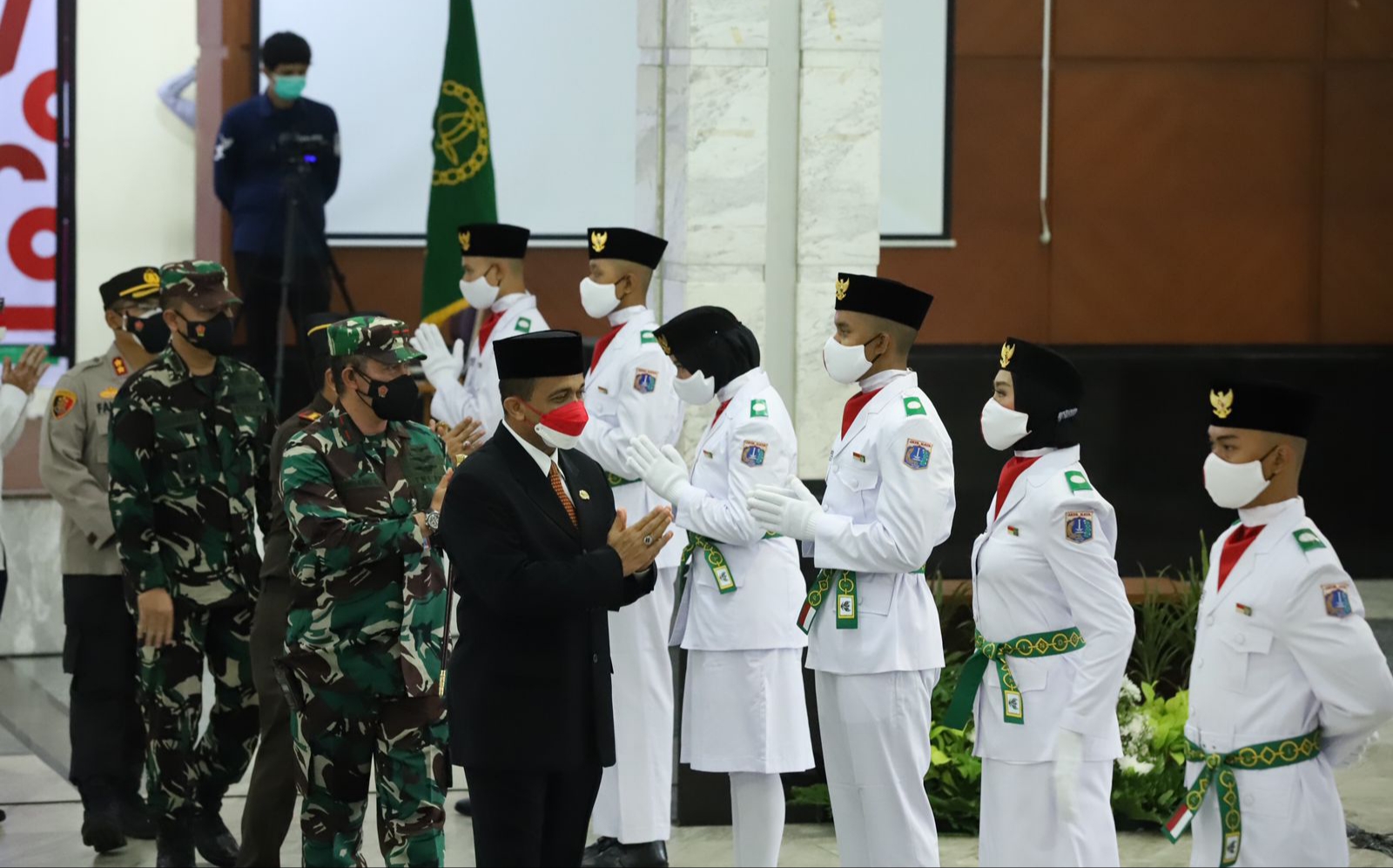 JAKARTA- JOURNALREPORRASE- Wali Kota Administrasi Jakarta Timur, M Anwar bersama Forkopimko mengukuhkan Pasukan Pengibar Bendera Merah Putih (Paskibra), Tahun 2021, di Ruang Serbaguna, Kantor Walikota Jakarta Timur, Senin (16/08/2021).
