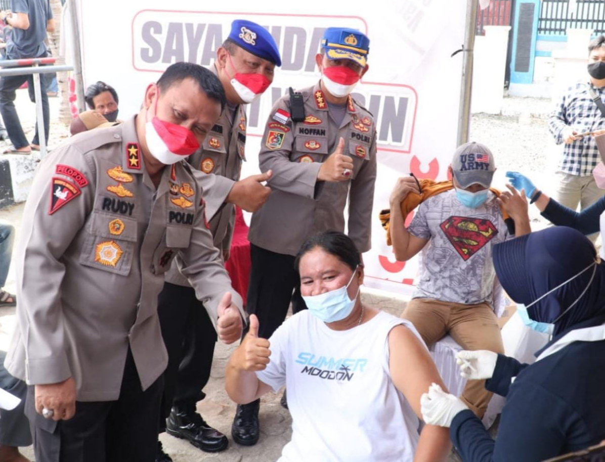 JOURNALREPORTASE-ANYER – Kapolda Banten Irjen Pol Rudy Heriyanto Adi Nugroho tinjauan pelaksanaan kegiatan vaksinasi massal dan bakti sosial Alumni Akpol Angkatan 1994 Batalyon Tunggal Panaluan di Pelabuhan Paku, Anyer, Kabupaten Serang.