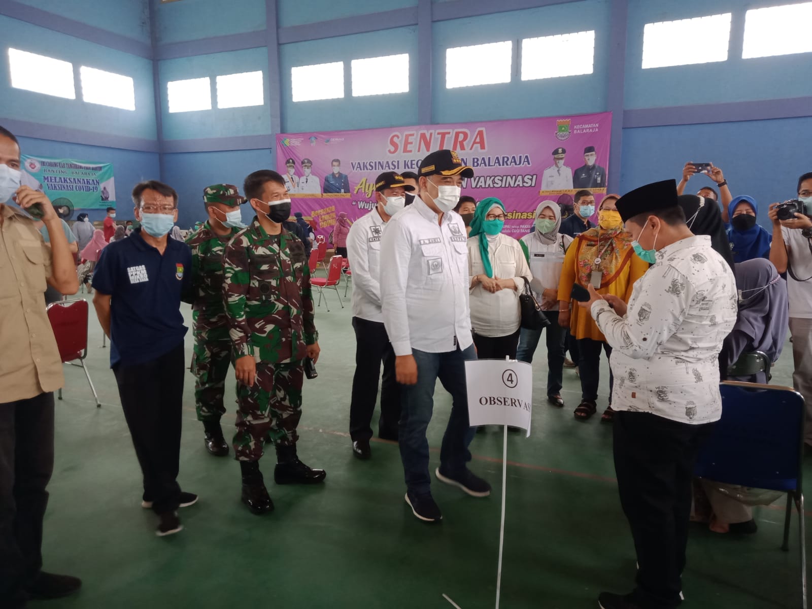 JOURNALREPORTASE- TIGARAKSA- Wakil Ketua Satgas Covid 19 Kabupaten Tangerang yang juga Dandim 0510/Trs Letkol Inf Bangun I E Siregar mendampingi Ketua Satgas Covid 19 Ahmed Zaki Iskandar memonitoring langsung vaksinasi serentak ibu-ibu hami dosis 1 Fizer. Vaksinasi di gelar di GOR Mini Desa Saga Kecamatan Balaraja Kabupaten Tangerang, Sabtu (28/08/2021).