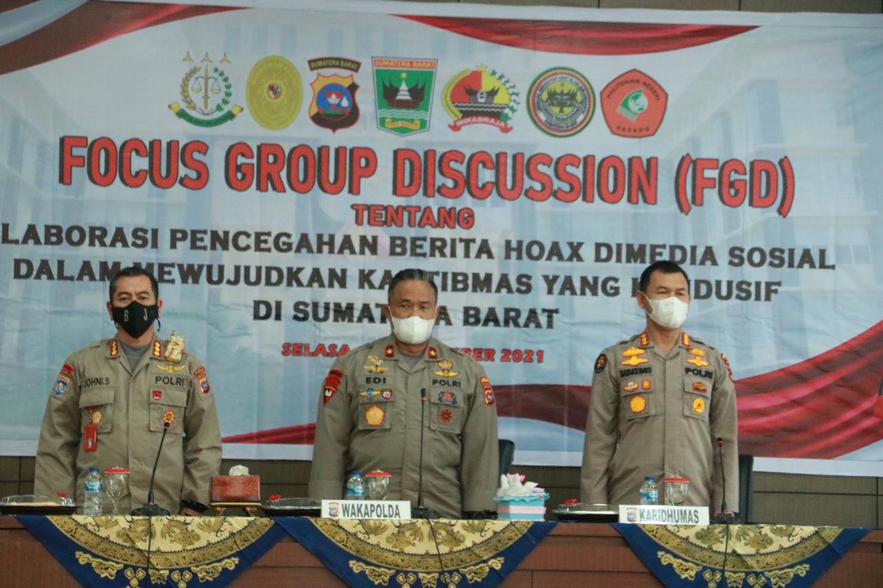 Untuk itu, Polda Sumbar menggelar Focus Group Discussion (FGD) dengan tema “Kolaborasi Pencegahan Berita Hoax Dimedia Sosial Dalam Mewujudkan Kamtibmas yang Kondusif di Sumatera Barat”, pada Selasa (28/9).