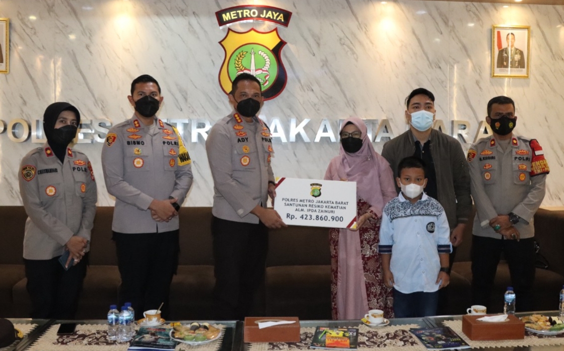 Kapolres Metro Jakarta Barat Kombes Pol Ady Wibowo mengatakan Santunan ini merupakan hak keluarga almarhum Ipda Zainuri yang mana semasa almarhum berdinas telah berdedikasi dan mengabdi kepada negara serta meninggal dalam tugas,” ujar Kombes pol Ady Wibowo, Kamis, 30/12/2021.