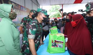 “Hari ini kami beserta rombongan hadir disini untuk melihat secara langsung pelaksanaan program pemerintah yaitu serbuan vaksinasi dan pembagian sembako yang digelar TNI AD bekerjasama dengan Pemda Provinsi, Kabupaten, Polri dan PT. Kimia Farma,” ucap Kasad.