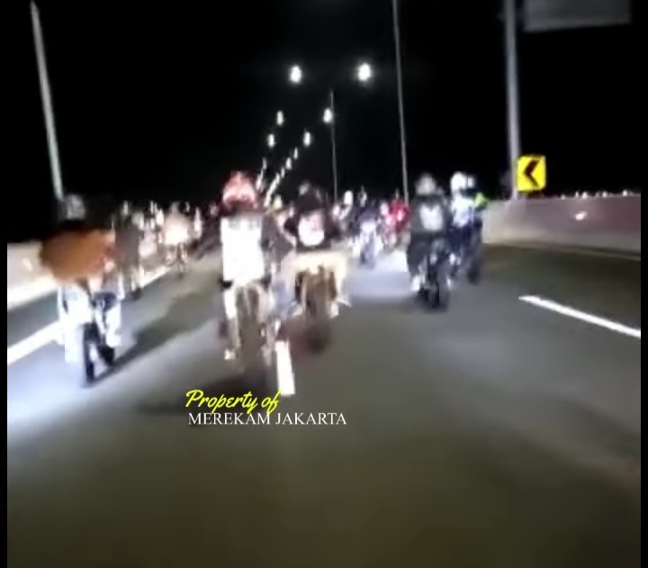 “Rombongan pengendara Supermoto melintasi Tol Kelapa Gading-Pulo Gebang pada Sabtu, 26/2/2022 sekitar pukul 03:00 WIB. Rombongan pengendara Supermoto tersebut diduga menerobos masuk melalui pintu tol dekat pertigaan Pasar Cakung, Jakarta Timur,” tulis keterangan di unggahan tersebut, seperti dikutip journalreportase.com, Senin (28/2/2022).