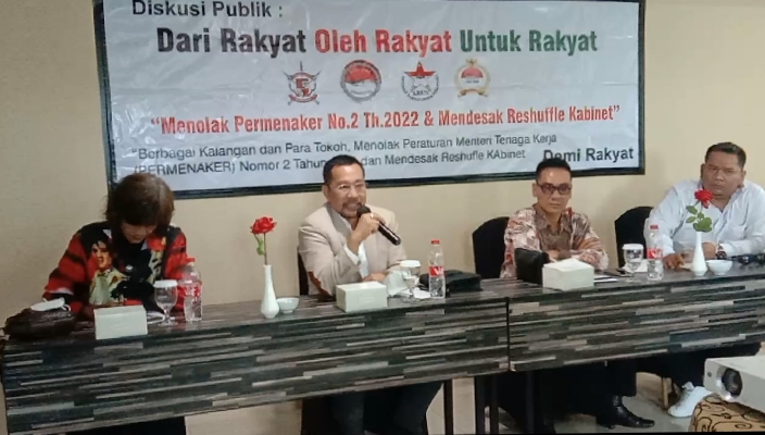 “Tema diskusi menolak Permenaker Nomor 2 Tahun 2022 dan mendesak Reshufle kabinet ini sangat keterkaitan, ada benang merah nya, karena bagi masyarakat luas sang Menteri sudah dinilai tidak berpihak bagi kalangan para tenaga kerja atau menteri perlu sosok wakilnya untuk menyeimbangkan, membantu berbagai kebijakan yang akan dicanangkan,” ungkapnya.