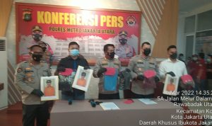 “Berdasarkan petunjuk keterangan saksi dan rekaman CCTV dalam waktu 4 hari tim Opsnal Polsek Kelapa Gading dan Unit Jatanras Polres Metro Jakarta Utara berhasil menangkap para pelaku di tempat berbeda,”beber Kapolres, Selasa (1/3/2022) di Mapolres.