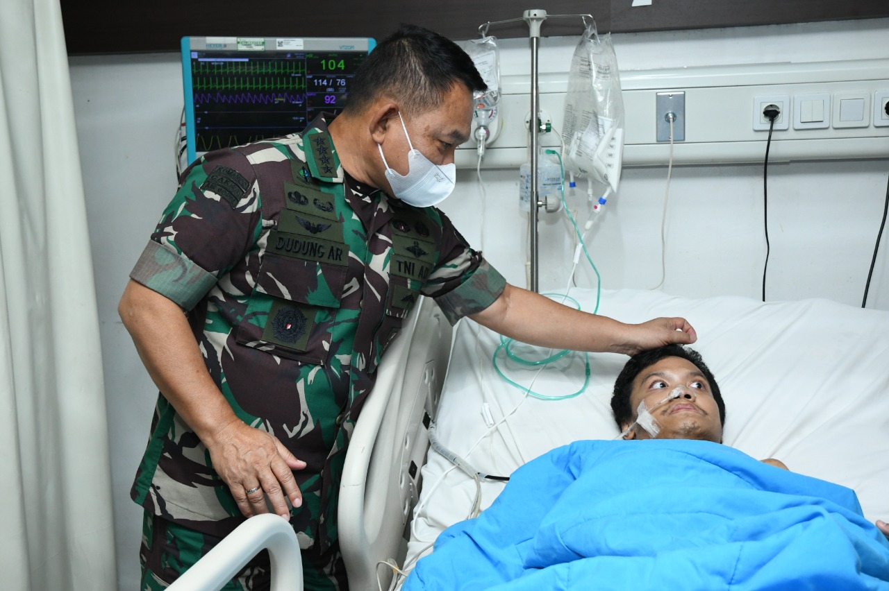JAKARTA- JOURNALREPORTASE- Kasad Jenderal TNI Dudung Abdurachman, beserta Ketua Umum Persit Kartika Chandra Kirana (Ketum Persit KCK) Ny. Rahma Dudung Abdurachman, menjenguk Andreas Yapanto (21).