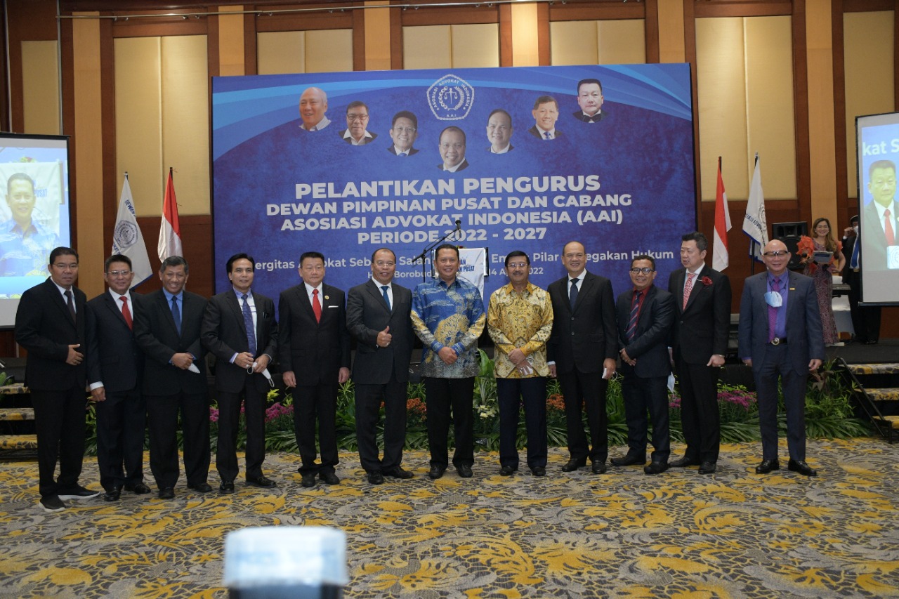Jakarta, Ketua Umum Dewan Pimpinan Pusat Asosiasi Advokat Indonesia (DPP AAI) Palmer Situmorang resmi melantik kepengurusan masa bakti 2022 – 2027 di Flores Ballroom, Hotel Borobudur, Jakarta Pusat, Kamis (14/4/2022). Dalam pelantikan itu dihadiri oleh Ketua MPR RI Bambang Soesatyo, Mantan Wakapolri Komjen Pol (Purn) Makbul Padmanegara.
