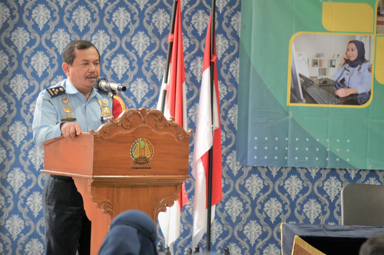 TANGERANG- JOURNALREPORTASE- Kepala Wilayah kemenkumham Banten, Tejo Harwanto menghadiri Pelatihan Budaya Pelayanan Prima Tata Cara Pengelolaan Pengaduan Masyarakat Melalui E Lapor yang diselenggarakan oleh Kantor Imigrasi Kelas I Non TPI Tangerang, Kamis, (9/6).
