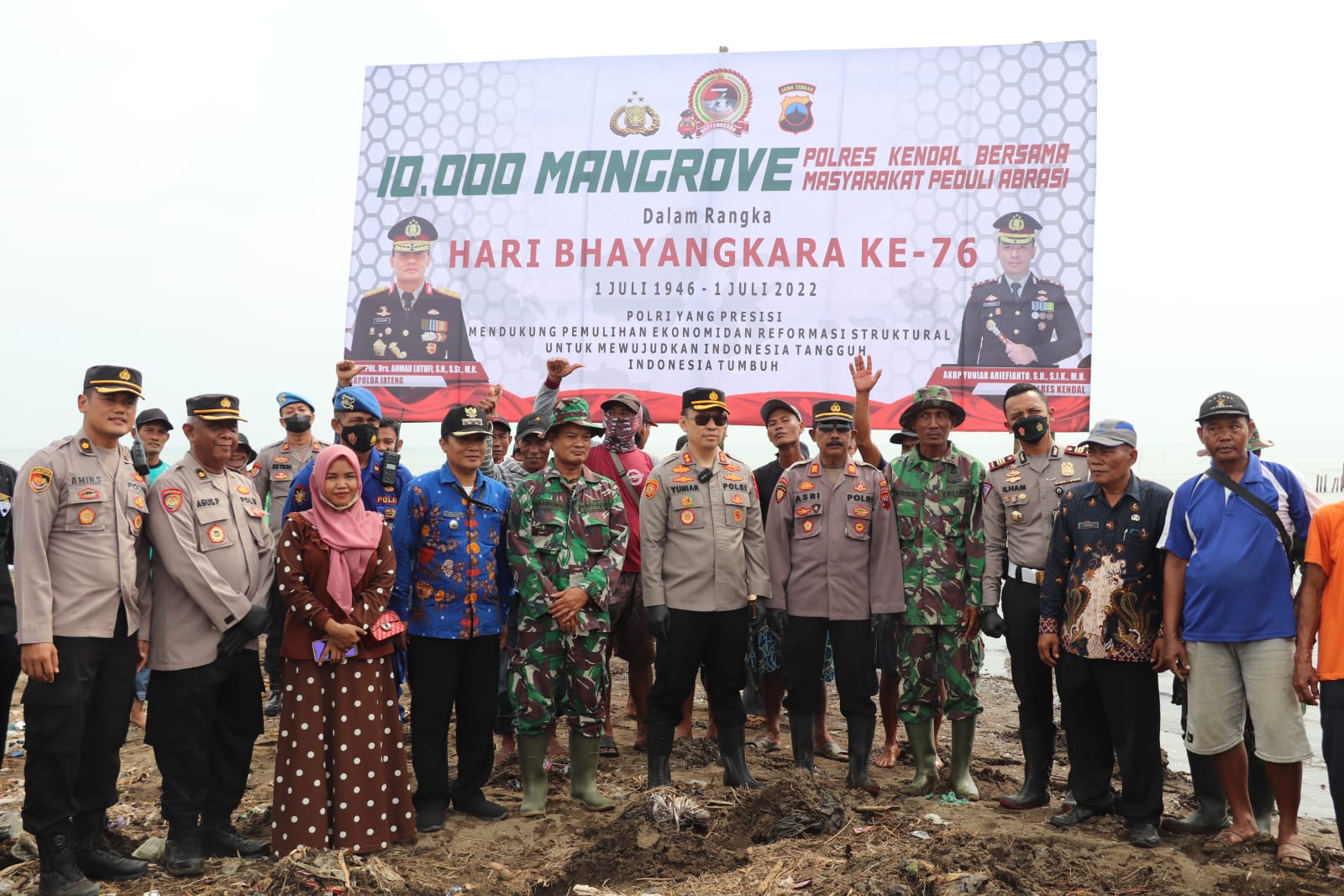 Kapolres Kendal yang hadir melakukan penanaman pohon. Sebanyak 10.000 Pohon Mangrove yang ditanama sebagai bentuk kepedulian Polri. “Dengan banyaknya penanaman pohon mangrove yang dilakukan sekarang, maka akan menjaga pantai tidak rusak oleh hantaman gelombang laut dan antisipasi abrasi di bibir pantai Utara Kecamatan Kangkung,” ujar Kapolres Kendal AKBP Yuniar Ariefianto.