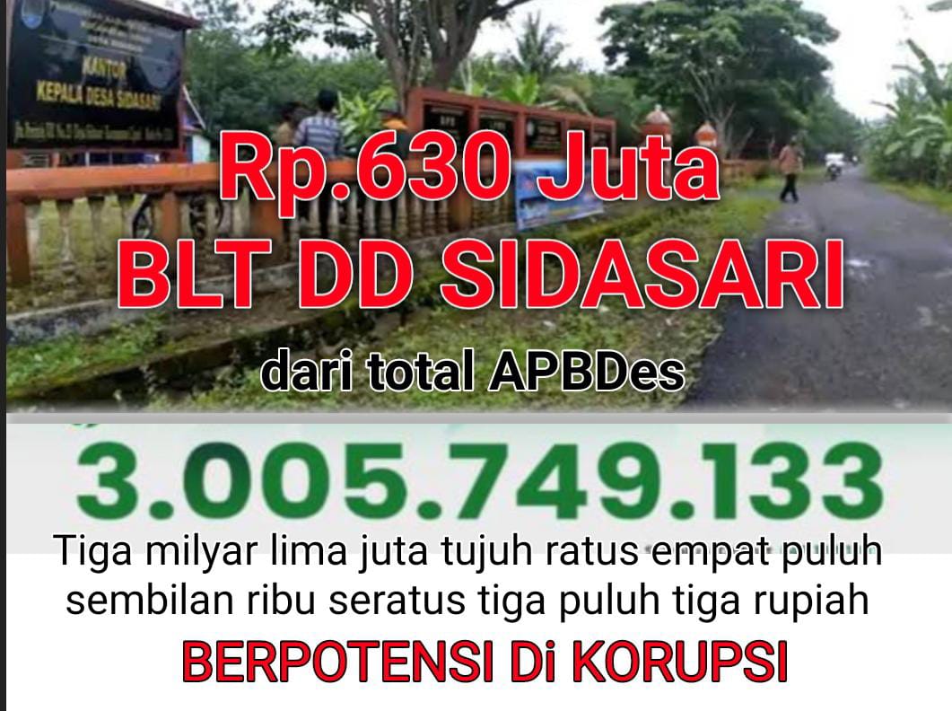 Sidasari sebagai salah satu Desa di kecamatan Cipari Kabupaten Cilacap Jawa tengah telah menganggarkan BLT DD T.A 2022 untuk 157 KPM atau Rp 630.000.000 ( Enam ratus tiga puluh juta rupiah) dari total APBDes Rp.3.005.749.133 (tiga milyar lima juta tujuh ratus empat puluh sembilan ribu seratus tiga puluh tiga rupiah)