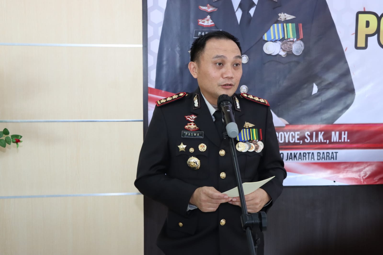 JAKARTA- JOURNALREPORTASE- Kapolres Metro Jakarta Barat Kombes Pol Pasma Royce bersama Forum Komunikasi Pimpinan kota (Forkopimko) melaksanakan upacara hari Bhayangkara ke 76 secara virtual zoom, di ruang Aris Dinanta, Polres Metro Jakarta Barat dan dipimpin langsung oleh Presiden Joko Widodo di Akademi Kepolisian, Semarang, Jawa Tengah, Selasa, (5/7).
