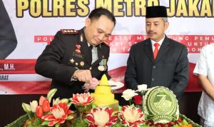 Tampak terlihat setelah kegiatan upacara secara virtual zoom dilanjutkan kegiatan pemotongan tumpeng dan kue ulang tahun dan baik kapolres Metro Jakarta Barat Kombes Pol Pasma Royce maupun walikota Jakarta Barat Yani Wahyu Purwoko memberikan secara simbolis kepada anggota dan asn polri serta dilanjutkan pemberian piagam penghargaan kepada juara perlombaan DAI cilik dan Poskamling terbaik.