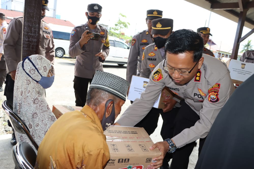Usai berdialog dengan jajaran, Kapolres Mukomuko kemudian membagikan paket bahan pokok untuk warga yang terdampak kenaikan harga BBM (Bahan Bakar Minyak).