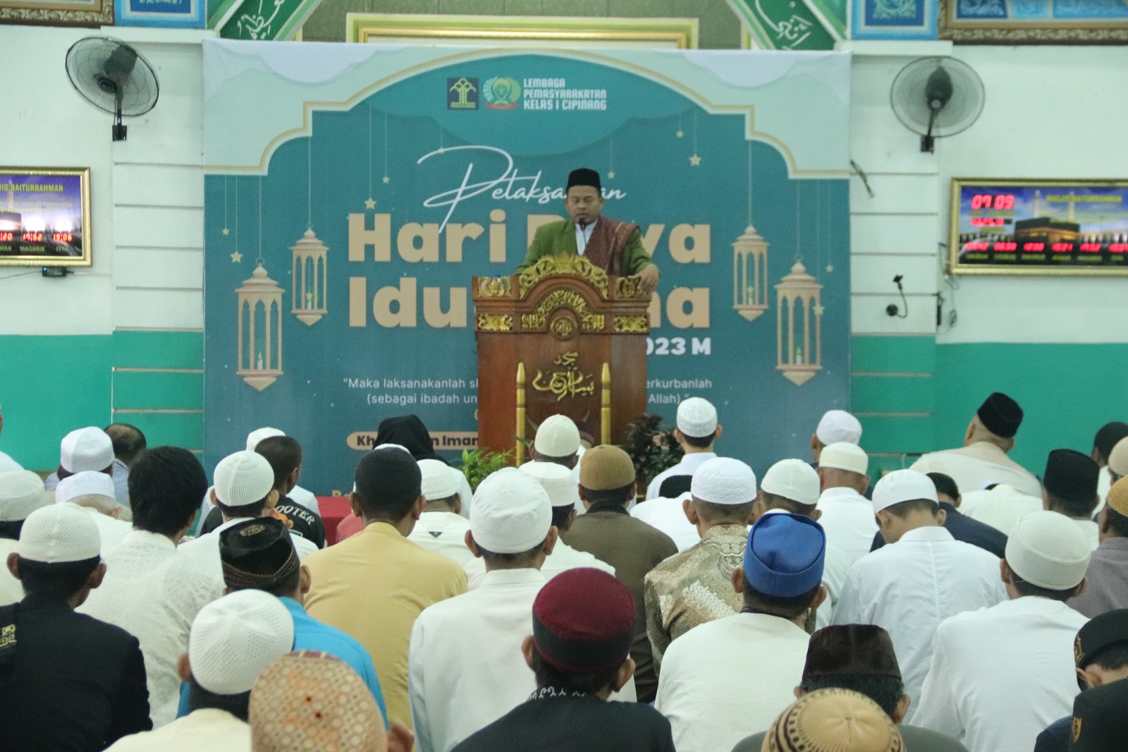 Sebelum pelakasanaan pemotongan hewan kurban, kegiatan diawali dengan sholat Idul Adha yang diikuti oleh pegawai dan ribuan Warga Binaan Pemasyarakatan (WBP) di Lapangan Lapas I Cipinang.