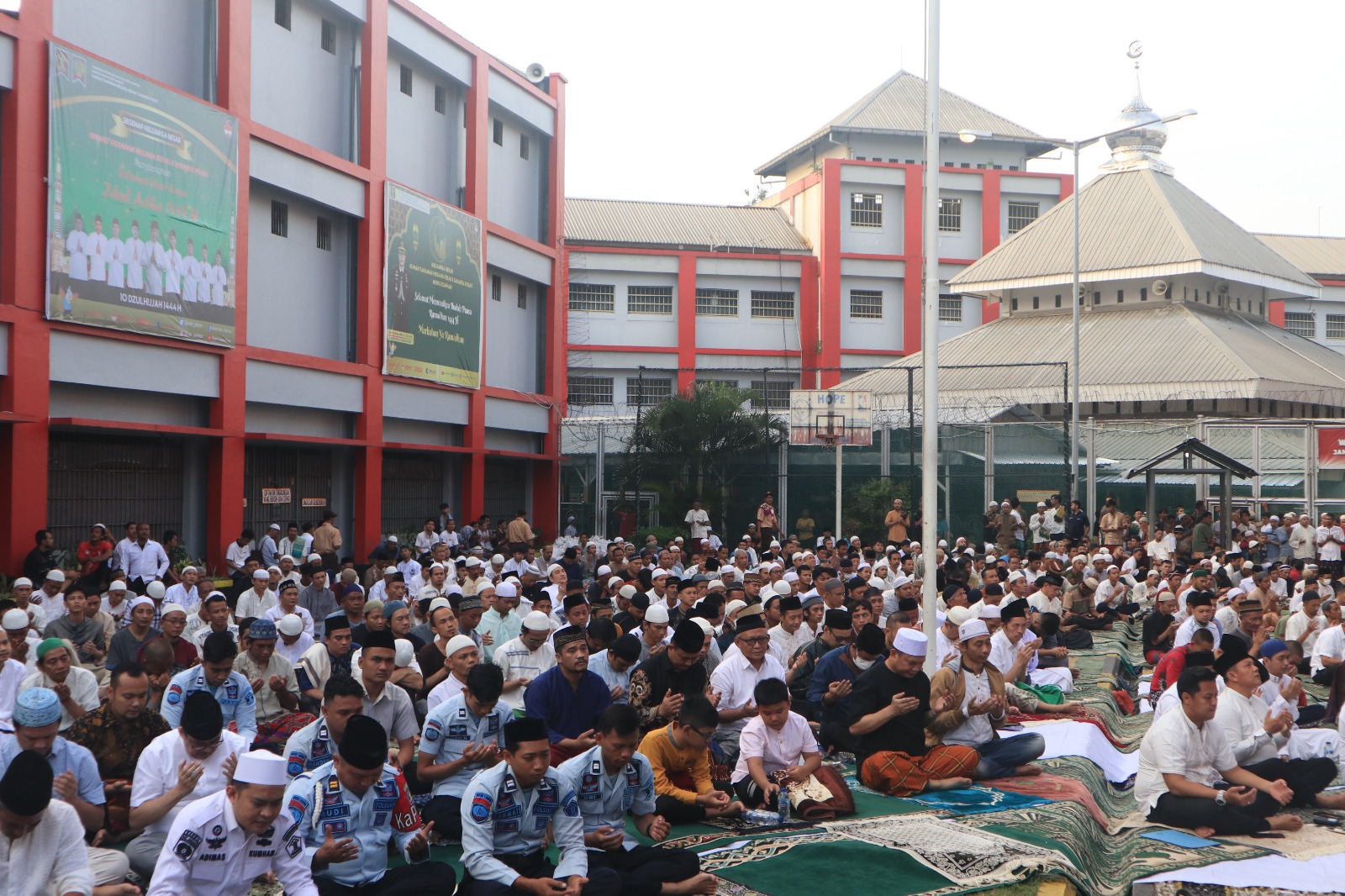 Sebanyak 2800 warga binaan muslim melaksanakan Solat Ied di Rutan Kelas I Jakarta Pusat.