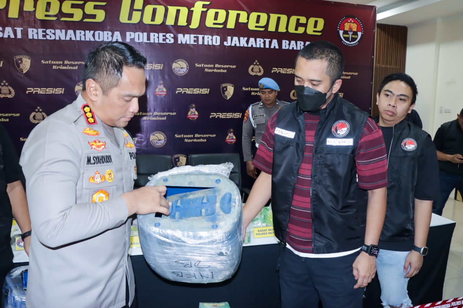 Kapolres Metro Jakarta Barat Kombes Pol M Syahduddi didampingi kasatres narkoba Akbp Indrawienny panjiyoga menyampaikan bahwa pengungkapan kasus ini melibatkan tiga orang yang berhasil diamankan, yaitu LH (39), YL (48), dan AM (45).
