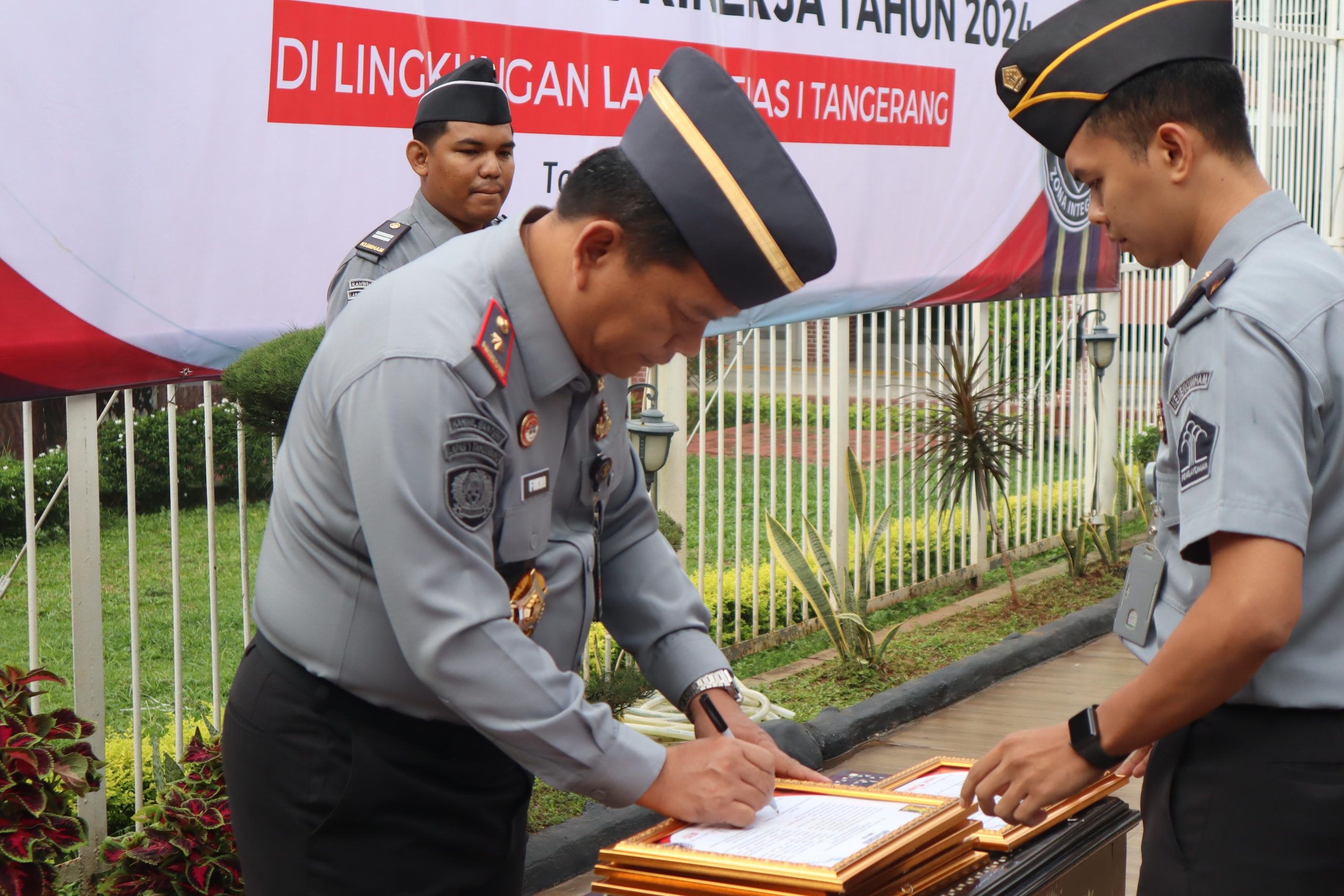 Selain penandatanganan komitmen bersama juga diselenggarakan penandatanganan perjanjian kinerja tahun 2024 yang ditandatangani oleh Kepala Lapas Kelas I Tangerang, Fikri Jaya Soebing dengan seluruh pejabat struktural eselon III.