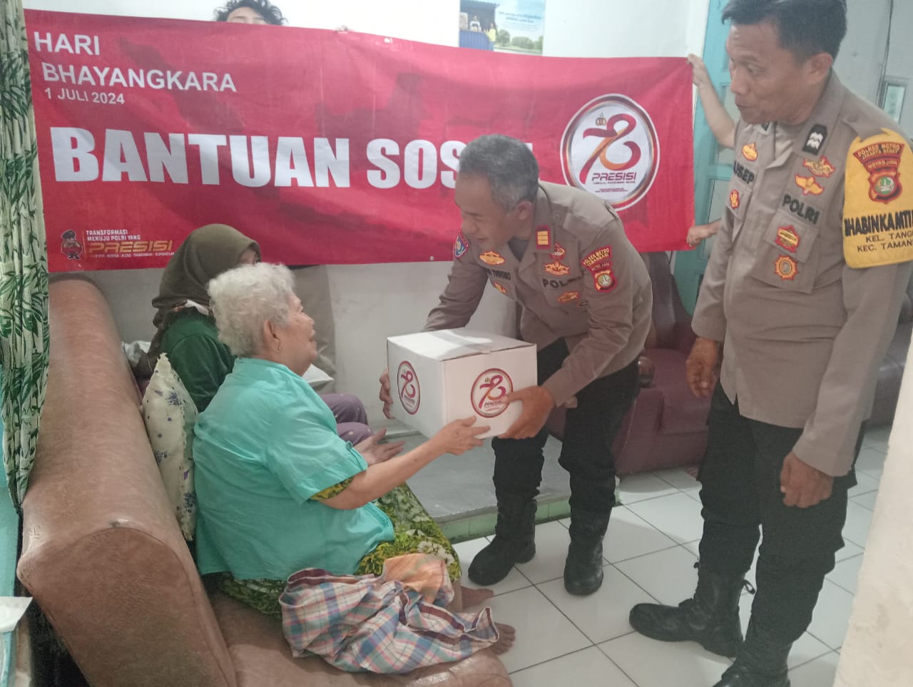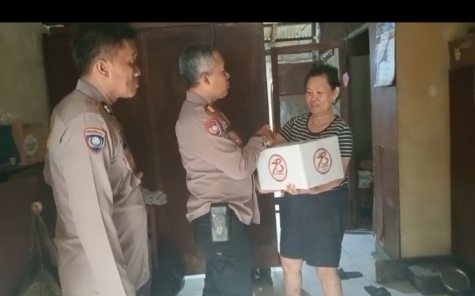 Kapolsek Metro Tamansari Kompol Adhi Wananda, didampingi Kanit bimas Akp Trisno Yuwono beserta Bhabinkamtibmas menggelar kegiatan Bantuan Sosial (Bansos).