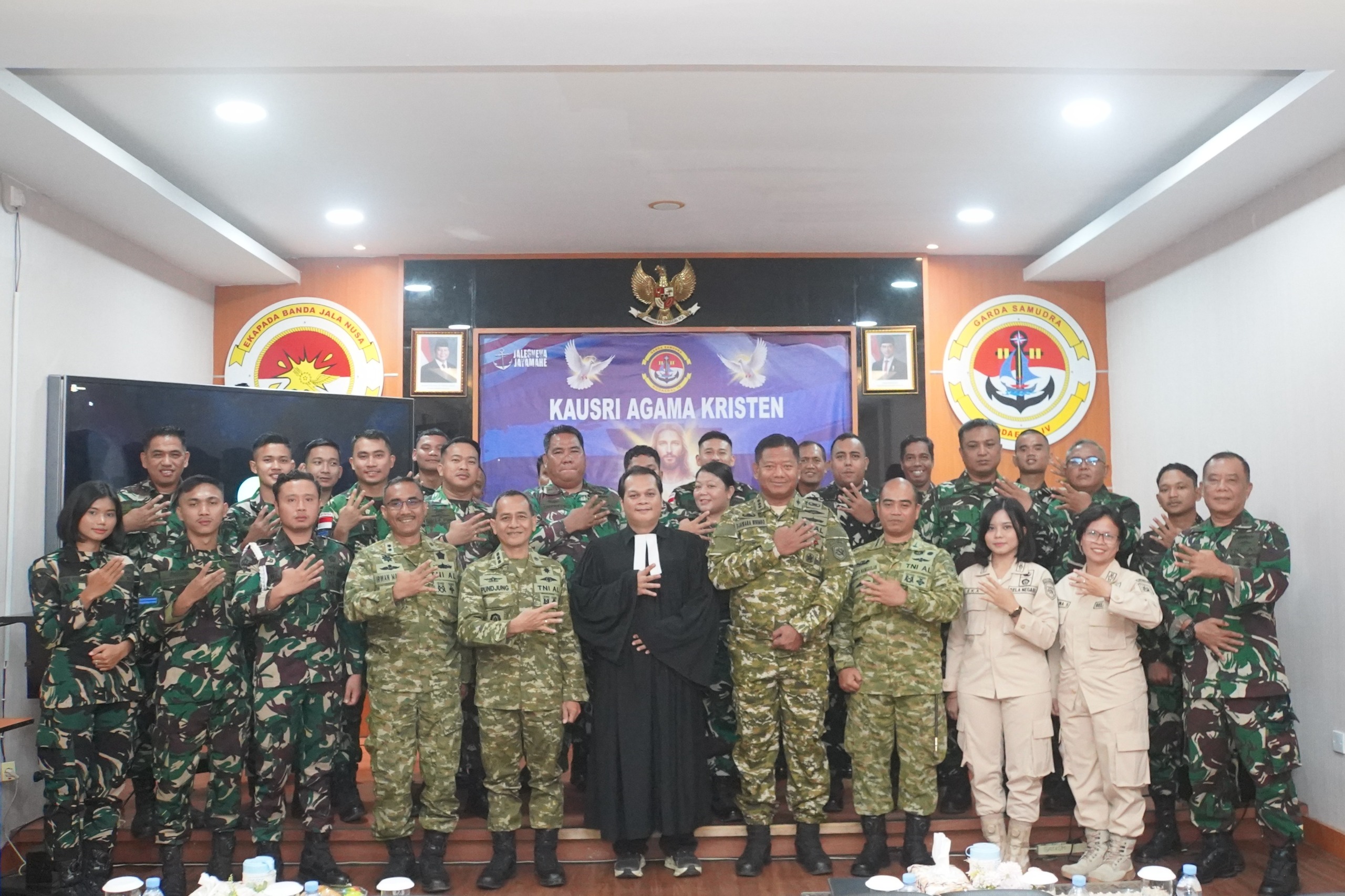 Kegiatan pembinaan rohani tersebut diikuti oleh seluruh Prajurit dan ASN TNI Angkatan Laut Jajaran Koarmada RI yang beribadah di tempat agama masing-masing.