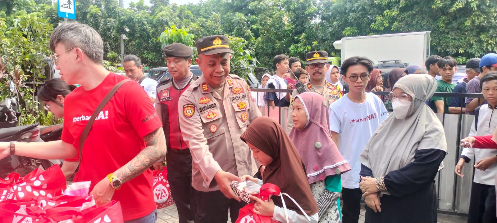 JAKARTA- JOURNALREPORTASE- Polsek Tambora dan Komunitas BerbagiYA bagikan ratusan paket sembako di kawasan pemukiman padat penduduk di Jembatan Besi, Sabtu (30/3/2024) sore.