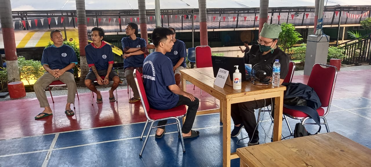 JAKARTA- JOURNALREPORTASE- Antisipasi penularan penyakit Tuberkulosis (TBC) Lapas Kelas I Cipinang melaksanakan kegiatan Skrining Active Case Finding (ACF) TBC, di Gazebo Lapas Kelas I Cipinang.
