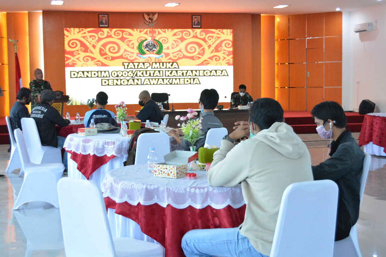 JOURNALREPORTASE- KUTAI KARTANEGARA- Dalam rangka membangun komunikasi dan silaturahmi dengan para wartawan media yang ada di wilayah kabupaten Kukar, Dandim 0906/Kkr Letkol Inf. Charles Alling mengadakan acara tatap muka dengan awak media bertempat di Aula Darmawangsa Kodim Kukar jalan K.H. Ahmad Muksin kelurahan Timbau kecamatan Tenggarong, Jum’at (27/08/2021).
