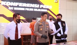 Kapolres Majalengka AKBP Edwin Affandi didampingi Kasat Reskrim Polres Majalengka AKP Febri H.Samosir dalam keterangan persz di Aula Sindangkasih Polres Majalengka Senin (29/8/2022), menerangkan, DS diamankan lantaran telah melakukan Perjudian Togel Online Jenis Sidney dan Hongkong.