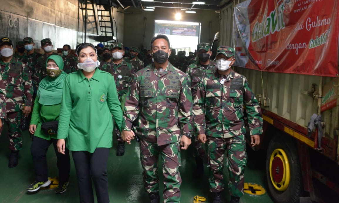 Bersama Ketua Umum Persit Candra Kirana (KCK), Ny. Hetty Andika Perkasa, pelaksanaan penyerahan bantuan oleh Kasad diadakan di Satang Air Pelabuhan Tanjung Priok Jakarta Utara, Minggu (17/01/2021).