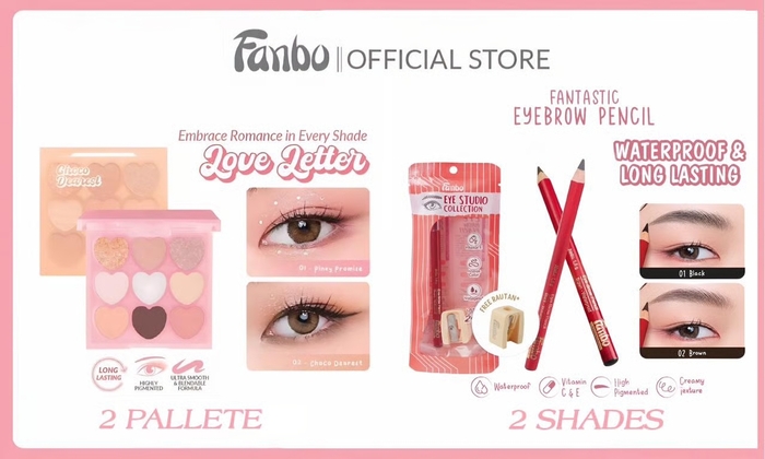 Fanbo Love Letter Eyeshadow Palette menawarkan warna-warna lembut yang cocok untuk tampilan natural. Palet ini menggabungkan shade matte dan shimmer dengan tekstur halus yang mudah dibaurkan. Banyak pengguna memberikan testimoni bahwa eyeshadow ini nyaman di kulit, tidak mudah creasing, dan warnanya tetap halus meski digunakan tanpa primer. Dalam kelas, siswa diajari cara memilih warna dasar, membentuk dimensi di lipatan mata, hingga memberikan shimmer di titik yang tepat agar tampilan tetap ringan.