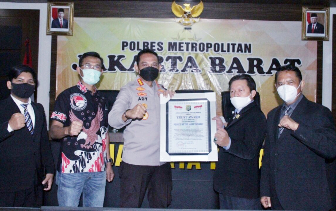 JAKARTA-JOURNALREPORTASE- Lembaga Kajian Strategis Kepolisian Indonesia (Lemkapi) memberikan penghargaan Trust Award kepada Polres Metro Jakarta Barat, Jumat, (9/3/2021).