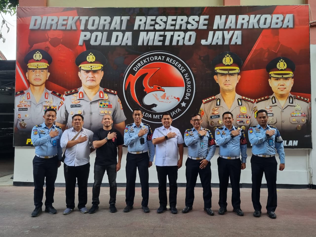 Wadir Narkoba Polda Metro Jaya, AKBP Dony Alex dan jajaran menyambut kedatangan Sukarno Ali bersama Ka.KPR Rutan Kelas 1 Cipinang Anak Agung Gde, Ka.KPLP Lapas Kelas IIA Narkotika Cipinang Aris Setiyawan Ka.KPR Rutan Salemba Hermanto.