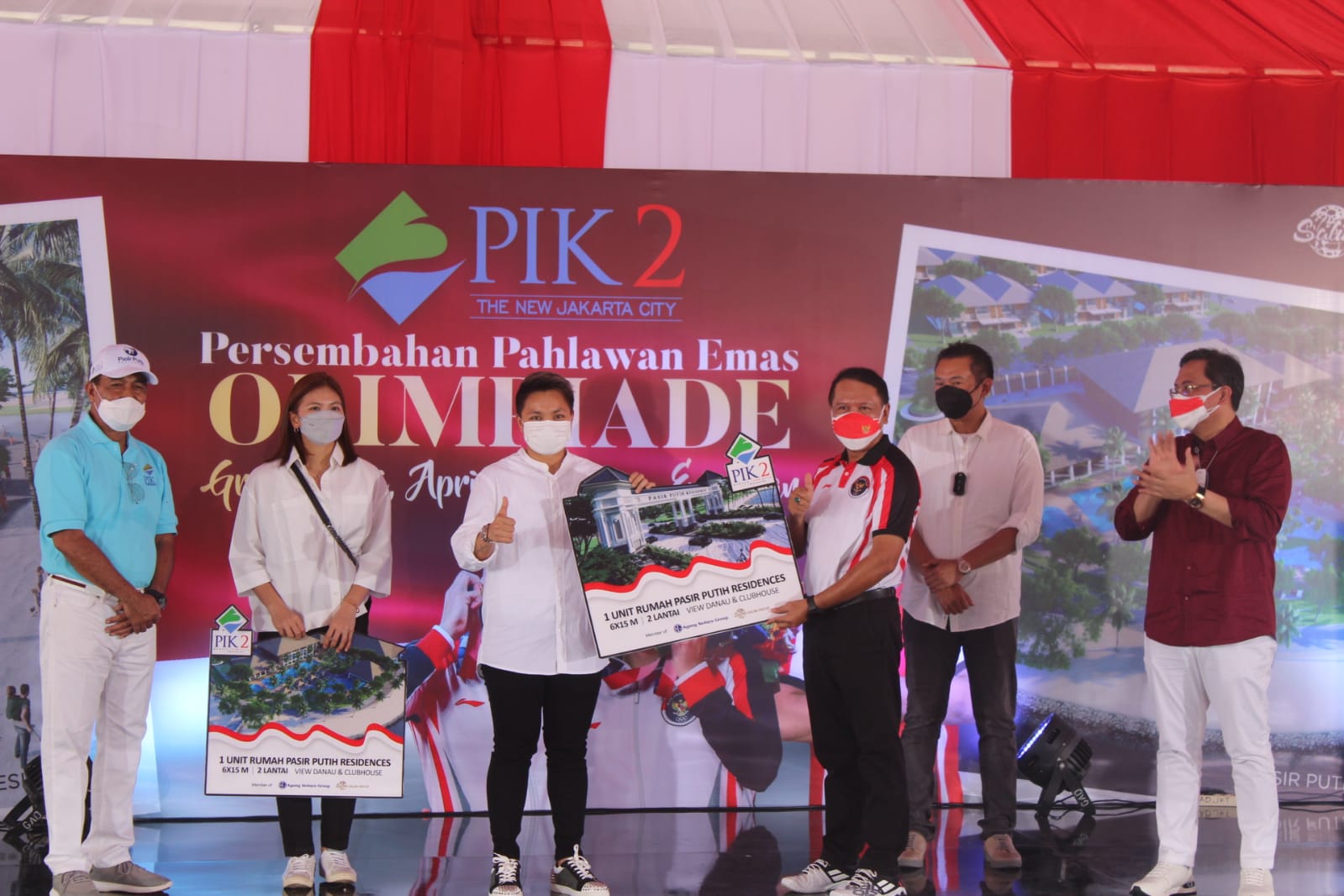 Ganda Putr Bulu Tangkis, pemenang medali emas tersebut memperoleh 2 unit rumah 2 lantai berukuran 6×15 m dengan view menghadap danau dan clubhouse, seharga Rp.3,55 Milyar. Sehingga total hadiah bagi kedua srikandi Indonesia ini adalah sebesar Rp. 7,1 Milyar. Tidak ketinggalan sang pelatih pun mendapatkan apresiasi berupa 1 unit rumah 2 lantai di cluster California PIK2, berukuran 4,5×10 m, senilai Rp. 1,3 M.