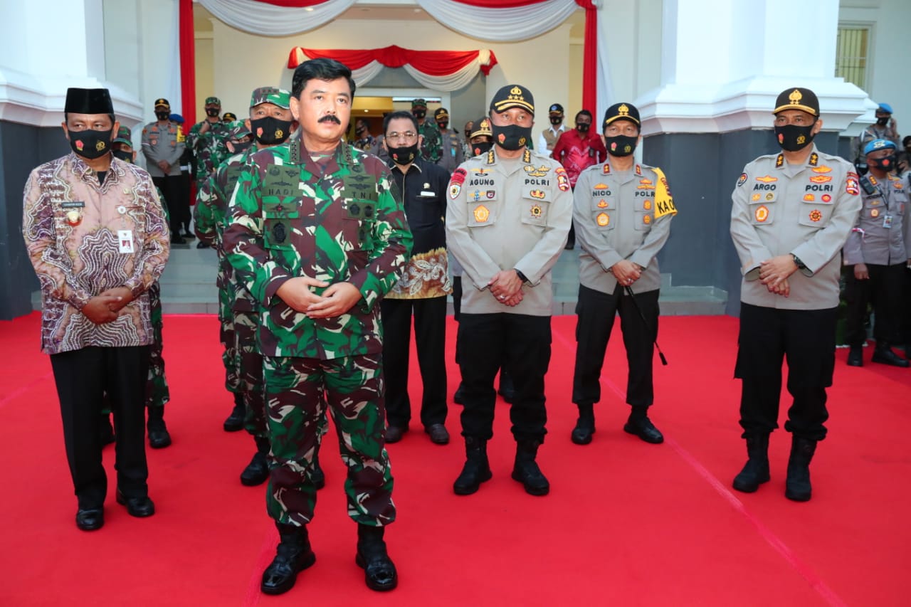“Para pejabat-pejabat di Kabupaten/Kota, para Bupati, Dandim, Kapolres, Kepala Desa, Danramil, Kapolsek agar selalu mengajak tokoh masyarakat mensosialisasikan disiplin protokol kesehatan,” tegas Panglima TNI.