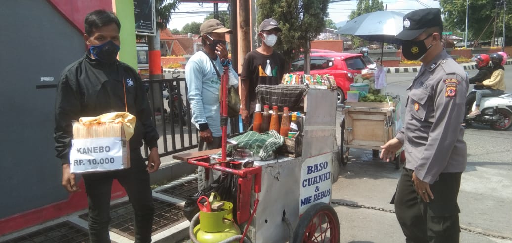 Tampak dikesempatan tersebut, petugas memberikan himbauan humanis kepada pedagang kaki lima yang berada di jalan Kh.Abdul Halim Kabupaten Majalengka agar dimasa Pandemi Covid-19 dalam kegiatan sehari-hari menjaga Prokes untuk menekan penyebaran Covid-19.