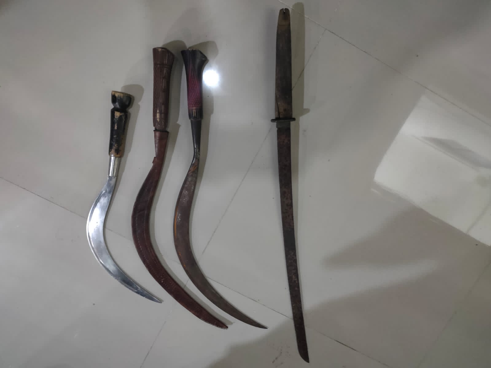 Kami juga mengamankan berbagai senjata tajam diantaranya 1 buah samurai, 3 buah celurit dan kendaraan yang digunakan pelaku
